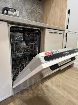 Полная комплектация встроенной кухонной бытовой техникой, посудомойка, варочная панель, духовой шкаф, холодильник.