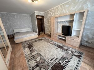 В квартире выполнен качественный ремонт. В комнате и на кухне есть необходимая мебель и техника: кондиционер, холодильник, телевизоры и стиральная машина, СВЧ-печь и пр.