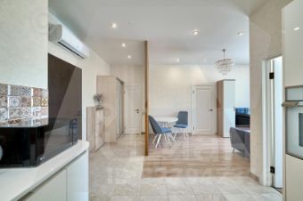 Квартира укомплектована всей необходимой мебелью и техникой, установлены: стиральная машина Bosch, микроволновая печь, посудомоечная машина, духовой шкаф, большой телевизор в гостиной, гигиенический душ, кондиционирование воздуха в спальне и гостиной.