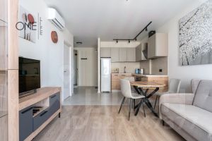 Сдается светлая квартира с новым ремонтом. Планировка включает просторную кухню-гостиную и отдельную спальню. Квартира полностью меблирована и оснащена всем необходимым