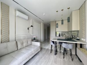 В апартаменте выполнен дизайнерский ремонт с использованием качественных материалов.