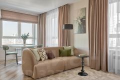 Квартира с дизайнерским ремонтом, обставлена современной новой мебелью и оснащена всей необходимой техникой: есть кондиционер, холодильник, телевизор, стиральная и посудомоечная машины, накопительный водонагреватель.