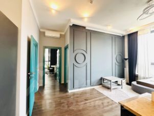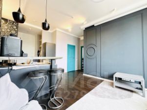Планировка: большая кухня-гостиная с обеденной зоной с экраном и проектором и удобным диваном, также раскладывается, угловая мастер-спальня с гардеробной с хорошим наполнением и лоджией, спальня- кабинет с раскладным диваном и на стене можно рисовать специальное покрытие, совмещенный санузел с ванной, также есть гардеробная в прихожей.