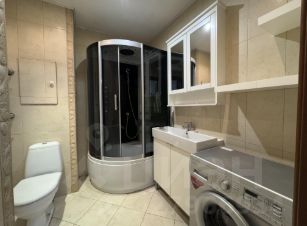 Просторные и изолированные комната и кухня с выходом на остекленную лоджию и французский балкон. Квартира светлая, в хорошем состоянии; обстановка включает мебель как на кухне, так и в комнате, а также всю необходимую технику: кондиционер, холодильник, посудомоечную машину, телевизоры и стиральную машину. Ванная комната оборудована душевой кабиной.