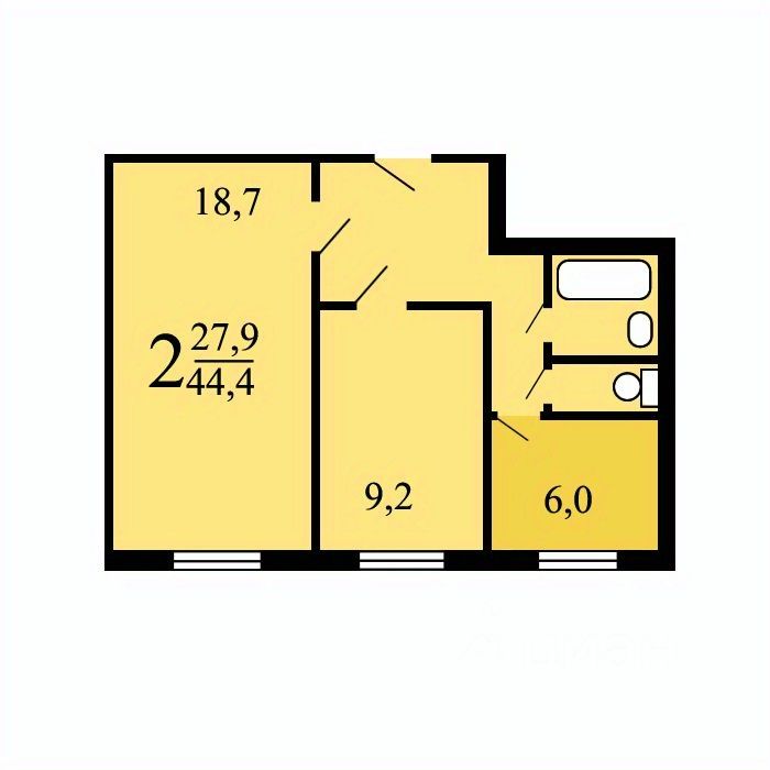 Эта двухкомнатная квартира очень удобная для проживания. Площадь квартиры составляет 44,40 квадратных метра.