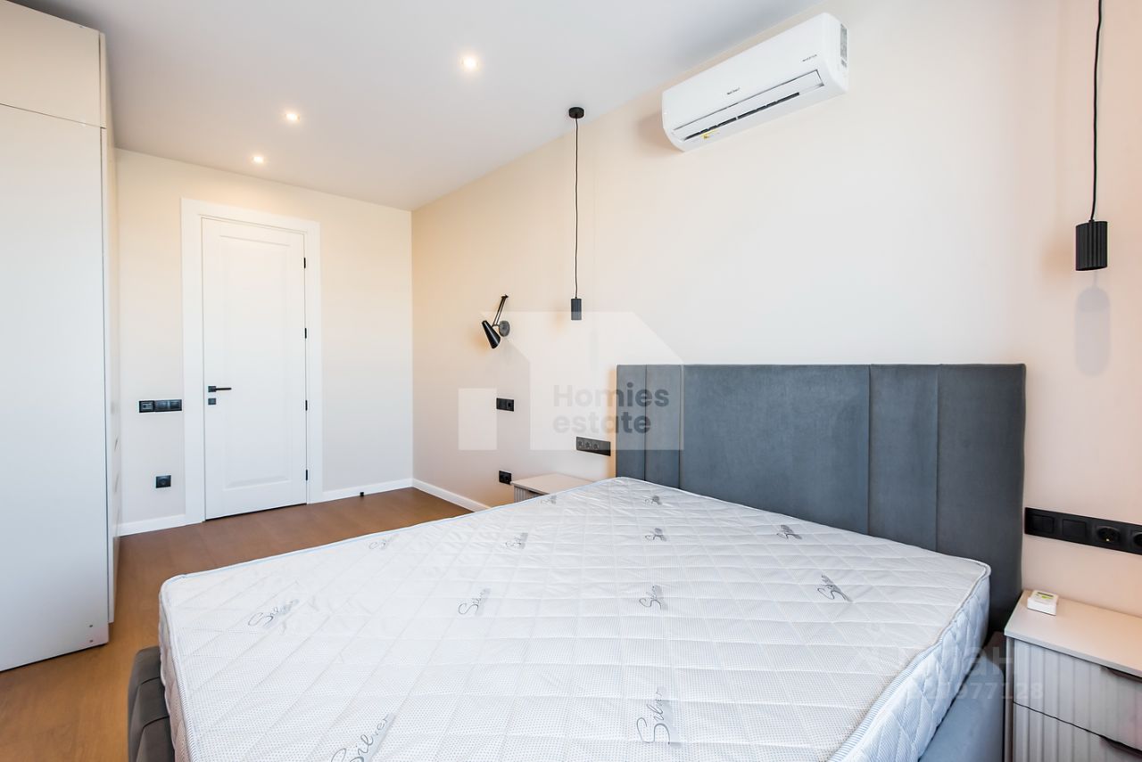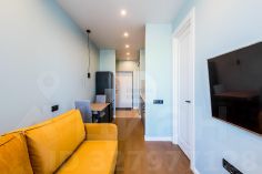 Апартаменты укомплектованы всей необходимой мебелью и техникой. Посудомоечная машина, духовой шкаф с СВЧ, ТВ, кондиционер (направленный из спальни в гостиную) и т. д.