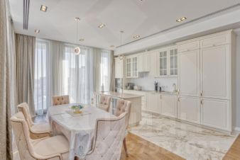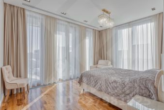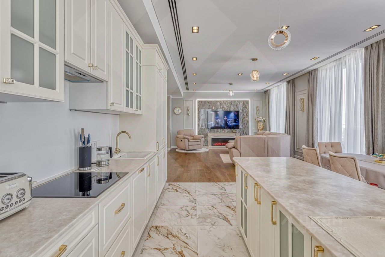 По планировке: просторная кухня-гостиная-столовая 54м, 2 спальни, 1 кабинет, 2 полных санузла, гардеробная комната, прихожая с вместительным шкафом. Потолки 3,2 м.