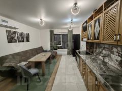 Квартира оборудована всей необходимой для проживания мебелью и техникой: есть кухонный гарнитур, посудомоечная машина, варочная панель, духовой шкаф, стиральная машина, холодильник, кондиционер.