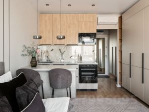 • Кухня: Современная кухня, барная стойка с двумя стульями, вся необходимая посуда и утварь.