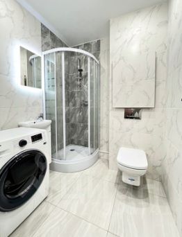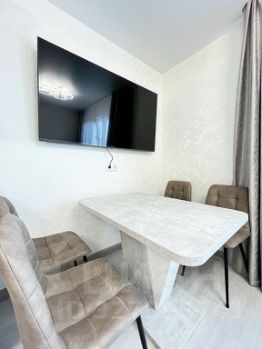Квартира оснащена необходимыми, для проживания, новыми мебелью и бытовой техникой. Выполнен дизайнерским ремонтом.