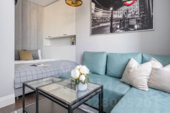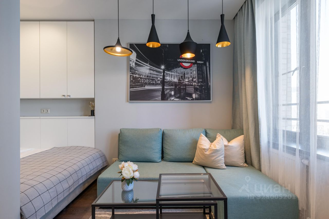 Сдается на несколько месяцев современная студия с дизайнерским ремонтом и мебелью, полностью готовая к проживанию.