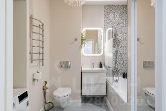 Санузел совмещен, ванная, пол и стены в кафельной плитке. Есть стиральная машина с сушкой, утюг, пылесос.