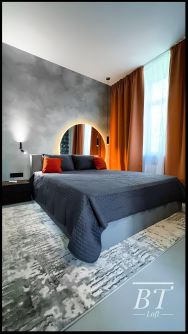 Апартаменты с дизайнерским ремонтом в стиле лофт-модерн, полностью меблирована и готова к проживанию.