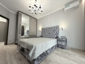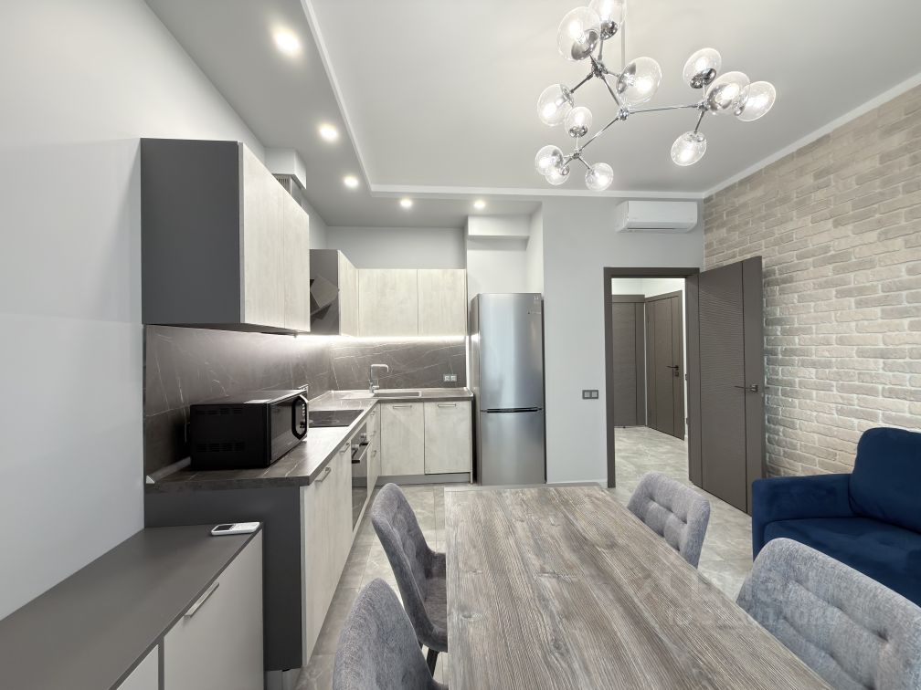 Квартира с дизайнерским ремонтом, полностью меблирована, готова к комфортному проживанию. На кухне установлена современная мебель и техника: холодильник, посудомоечная машина, микроволновая печь, духовой шкаф. В комнате есть кондиционер и телевизор. В ванной комнате — ванна и стиральная машина. Окна квартиры выходят во двор, поэтому здесь всегда тихо и спокойно.