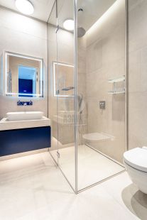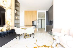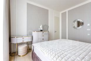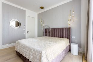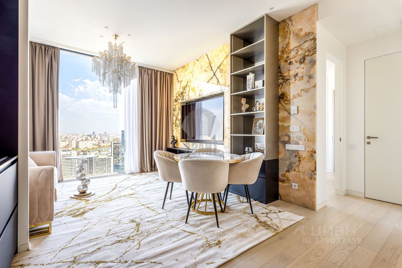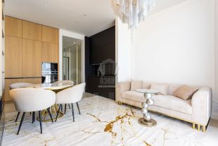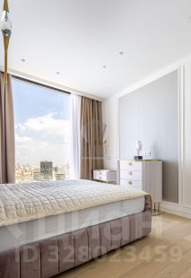 Удачное планировочное решение. В квартире просторная кухня-гостиная с элегантным классическим интерьером, эргономичная, современная кухня с техникой smeg, светлая спальня с широкой кроватью, 2 санузла. Есть душ и ванна. Продуманный и вместительный гардероб. Квартира расположена на 27 этаже в башне park. Делалась для собственного проживания.