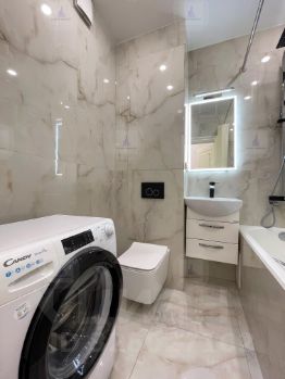 • Теплые полы везде, где плитка (санузлы, коридор, кухня, балкон). Имеется кондиционер, телевизоры, интернет. Кухонная зона оборудована всей необходимой встраиваемой техникой, кроме посудомоечной машины.