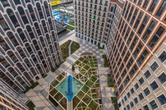 Комплекс находится на охраняемой очень красивой территории. Входная группа имеет шикарное исполнение. Вокруг ЖК развитая инфраструктура, включая школы, детские сады, магазины, фитнес-центры, кафе. Парк Сокольники пешком в 8 минутах, до метро Алексеевская 5 минут.