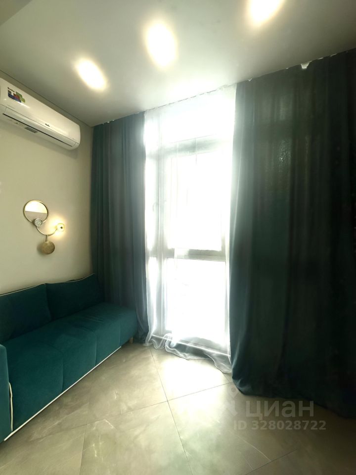 Квартира оформлена в дизайнерском стиле и полностью готова для комфортного проживания. В комнате и на кухне есть необходимая мебель. Встроенная техника включает кондиционер, холодильник, посудомоечную машину, телевизор и стиральную машину. Санузел совмещенный и оборудован душевой кабиной, что добавляет удобства.