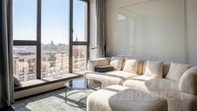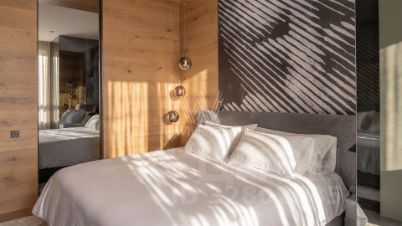 Квартира с 1 спальней общей площадью 55 м² в комплексе премиум-класса "РедСайд". Интерьер выполнен по авторскому проекту бюро Yodezeen в современном стиле. В отделке использованы широкоформатный керамогранит, натуральный шпон, паркет. Установлены стеклянные двери и перегородки Rimadesio, на полу уложены ковры ручной работы Jacaranda. Панорамные окна наполняют пространство светом и открывают вид на Москву.