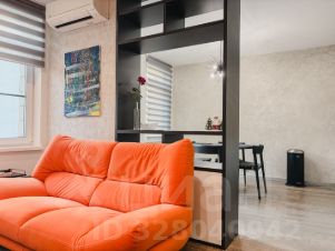 Просторная гостиная: Здесь стоит удобный раскладной диван — идеальное место для вечерних просмотров кино или приема гостей. В зоне отдыха разместился современный телевизор и компьютерный стол, позволяя организовать удобное рабочее место (фактор важный, если кто-то из пары работает из дома).