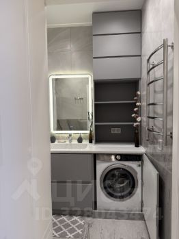 Санузел раздельный. В ванной: стиральная машина AEG, шкафы, электрический полотенцесушитель