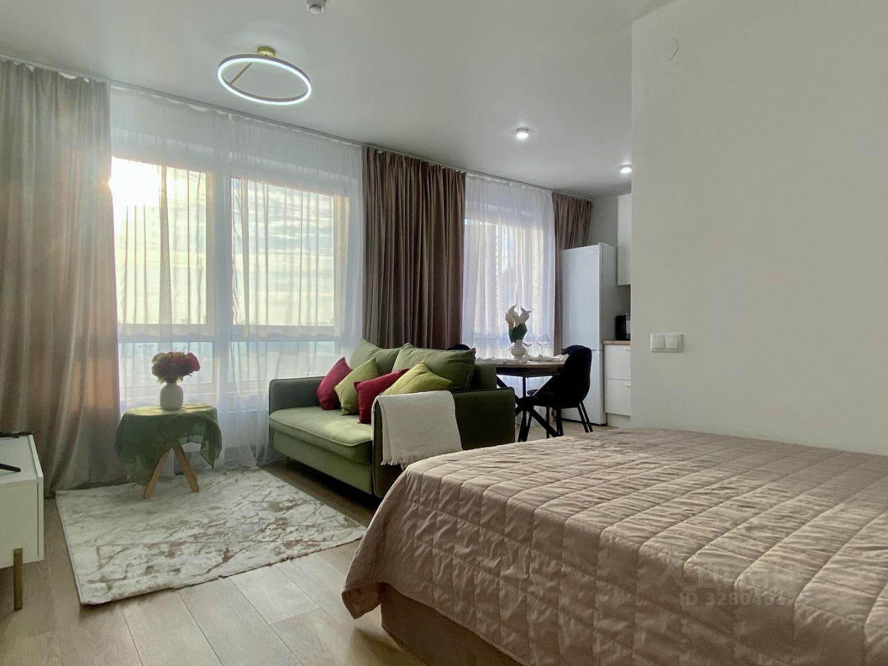 Предлагается в аренду стильная 1-комнaтная видовая квapтира студийной планировки в новом ЖК "Maтвеeвский паpк".