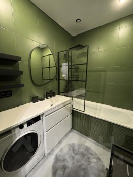 - Полный комплект бытовой техники: встроенный холодильник, духовой шкаф, микроволновка, варочная панель, посудомоечная и стиральная машины;