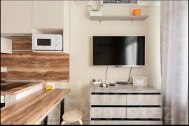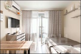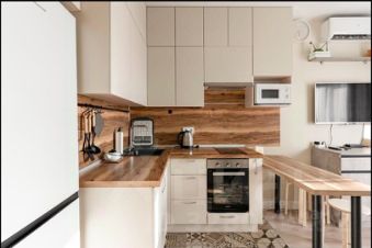 Внутри квартиры вас ждёт стильный и практичный интерьер. В комнате и на кухне есть вся необходимая мебель, и посуда.