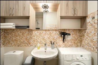 Из техники вы найдёте кондиционер, холодильник, телевизор и стиральную машину, что делает проживание максимально комфортным.