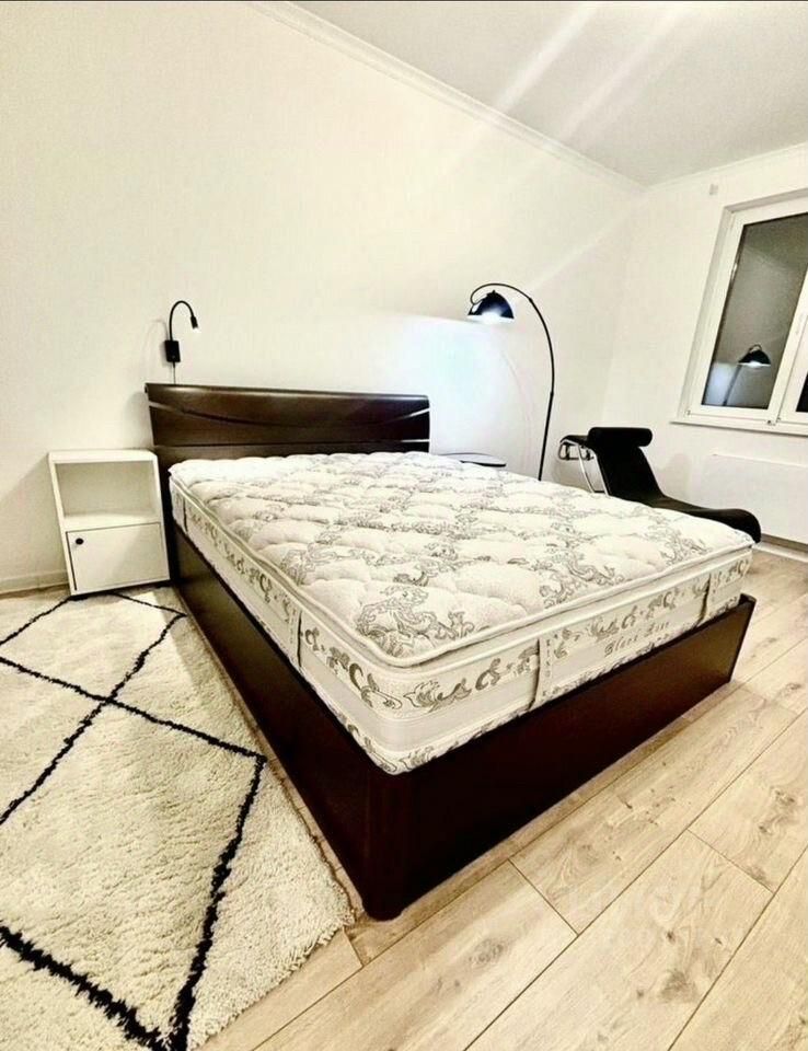 Кровать 160х200 с роскошным премиальным ортопедическим матрасом King Koil высотою 39 см + раскладывающийся диван на кухне