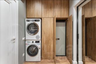 на данный момент убран телевизор из спальни, и полочки возле дивана, установку телевизора можно обсудить. так же установлена другая стиральная и сушильная машина (Miele).