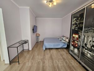 В квартире сделан косметический ремонт, который создает приятную атмосферу. В комнате и на кухне есть вся необходимая мебель для комфортного проживания. Квартира оборудована всей необходимой техникой: кондиционером, холодильником, телевизором и стиральной машиной. В ванной комнате установлена ванна, совмещенный санузел.