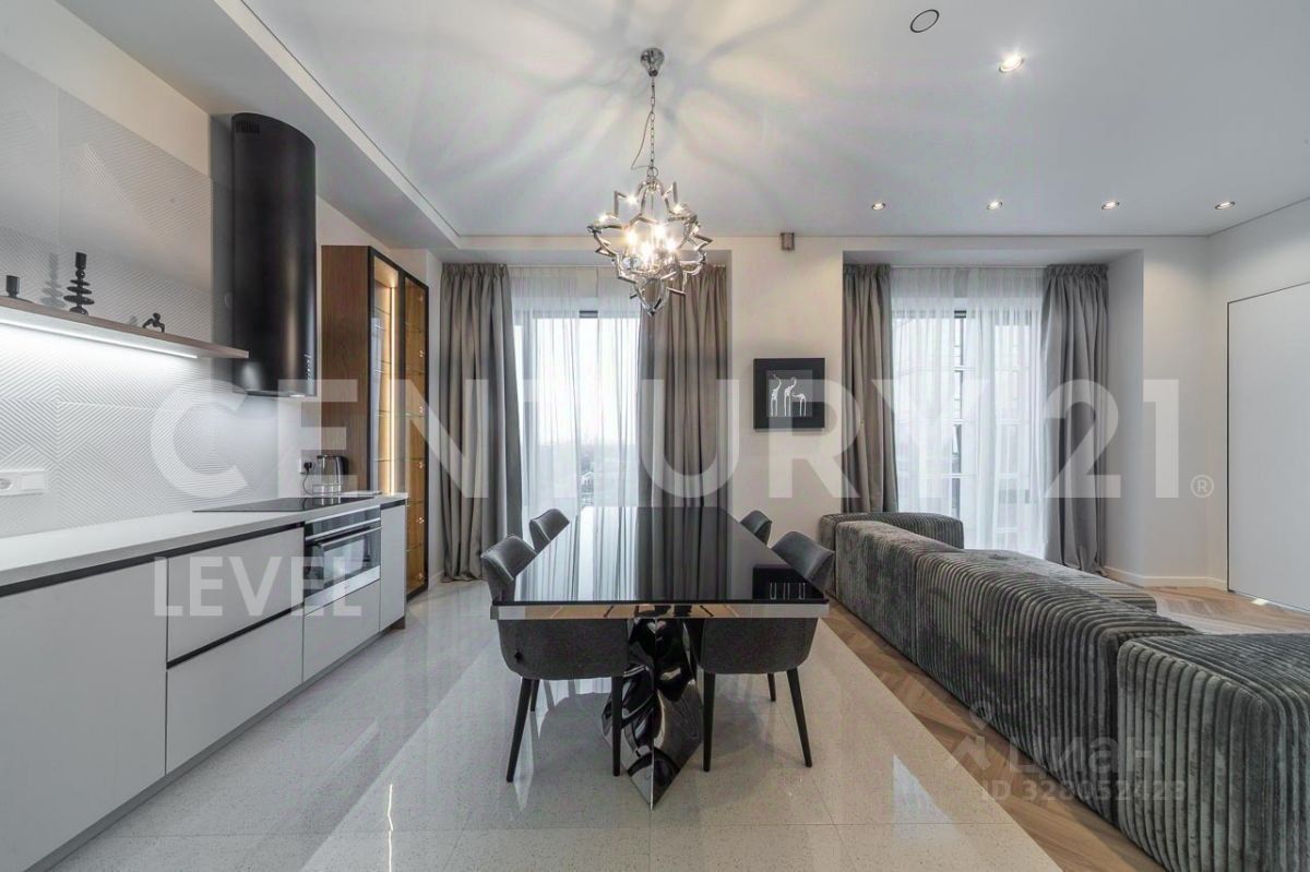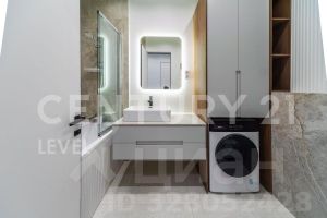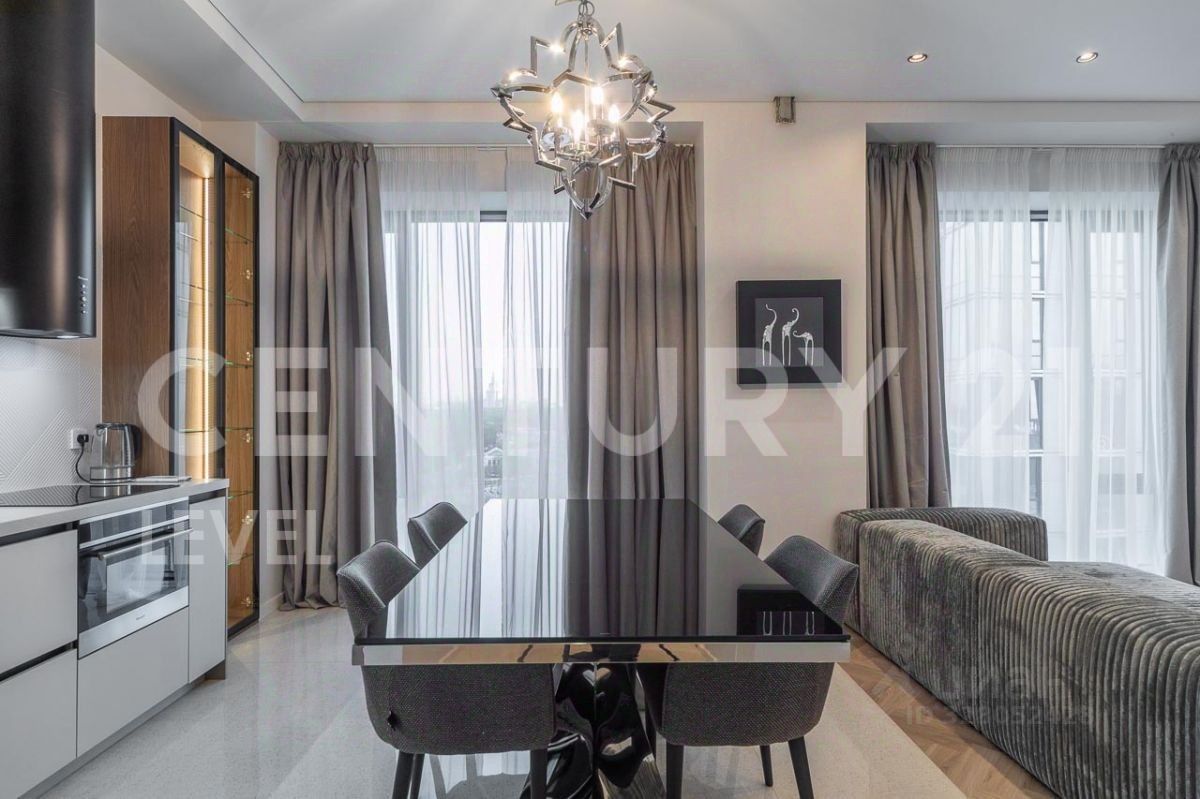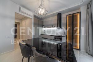 Квартира полностью меблирована, установлена кухня со всей необходимой техникой, вытяжка, варочная панель, печь, холодильник, посудомоечная машинка, кондиционер, стиральная машина с сушкой.