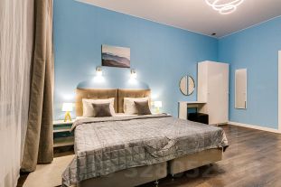 Квартира имеет дизайнерский ремонт, что создает уютную и современную атмосферу. В комнате есть вся необходимая мебель, а также кондиционер, холодильник, телевизор и стиральная машина. Душевая кабина в ванной комнате добавляет комфорта, а высота потолков 2,5 метра делает пространство более просторным.