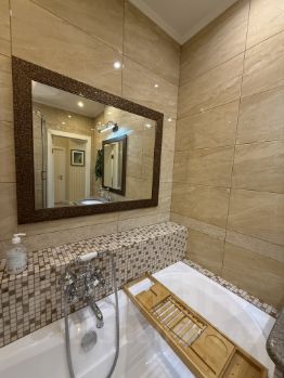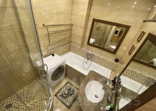 Квартира полностью меблирована и готова к проживанию. На кухне и в комнатах есть вся необходимая мебель и техника, включая кондиционер, холодильник, посудомоечную машину, систему фильтрации питьевой воды. Раздельные санузлы с с душевой + ванной, стиральной машиной и сушкой белья.