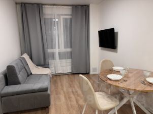 Жилая площадь составляет 28 м², санузел совмещенный. В квартире 4 спальных места. Проживание разрешено с детьми старше 6 лет, но без домашних животных.