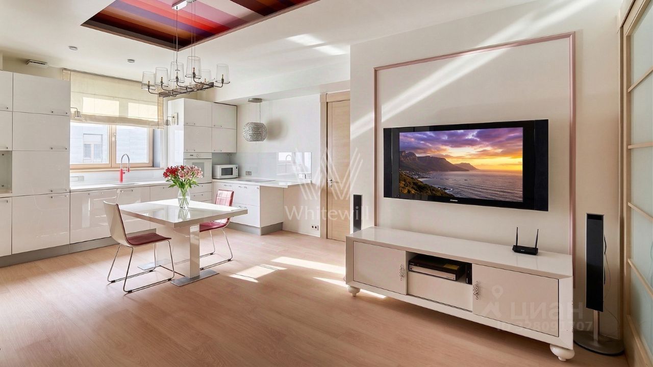Квартира с 2 спальнями и террасой в комплексе "Дом на Композиторской" у Нового Арбата. Квартира общей площадью 95 м² расположена на 5 этаже. Выполнен дизайнерский ремонт в современном стиле в светлых тонах. Из окон открываются виды на улицу и в тихий двор. Спланирована кухня-гостиная, 2 спальни, ванная комната, 2 санузла, гардеробная, холл, летняя терраса под навесом. Квартира укомплектована кухонной мебелью и оборудована бытовой техникой. Комнаты оснащены кондиционерами. Машино-место в подземном паркинге входит в стоимость.