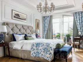 Квартира с двумя спальнями, гостиной и кухней-кабинетом, двумя гардеробными и двумя с/у оформлена профессиональным дизайнером, в современном стиле. Мастер-спальня с зимним садом.