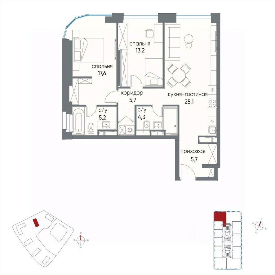 Данная квартира имеет удобную и функциональную планировку: изолированные мастер-спальня и детская/кабинет, два с/у, гардеробная, ниша для постирочной зоны, кухня-гостиная. Выполнен современный ремонт от застройщика. Из окон открывается приятный вид на квартал.