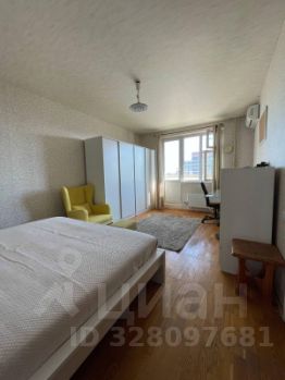 Квартира полностью укомплектована мебелью и готова к проживанию, в комнате двуспальная кровать с прикроватными тумбочками, комод, шкаф-купе, компьютерный стол и кресло, есть переносное зеркало, на кухне установлен кухонный гарнитур под единой столешницей с обеденной зоной.