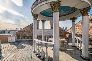 Великолепная квартира с ТЕРРАСОЙ 67 метров! Пришлю ВИДЕО по запросу. Для тех, кто мечтает иметь личное пространство на открытом воздухе в центре столицы. Квартира имеет ТРИ уровня. 1-й уровень: прихожая, гостиная 40 метров, кухня 14 метров, спальня 20 метров, санузел с душевой кабиной и сауной, кладовая комната, лестница на второй уровень. 2-й уровень: cпальня 14 метров, просторный санузел с раковиной и унитазом, невысокая лестница на третий уровень. 3-й уровень: комната свободного назначения перед выходом на террасу, санузел с раковниой и унитазом, терраса 67 метров. На террасе установлена беседка, раковина с водой. С террасы открывается завораживающий вид на центр Москвы. В стоимость включено одно МАШИНОМЕСТО в подземном паркинге. В квартире выполнена дорогая отделка, на полу натуральный паркет в отличном состоянии, в санузлах красивая дорогая плитка, установлена качественная импортная сантехника, кондиционеры во всех комнатах, много места для хранения, качественная итальянская мебель, просторная, оборудованная всем необходимой техникой кухня. Уютное жилье, хороший элитный дом с красивой входной группой, солидные дружелюбные соседи. Жильцов с домашними животными не рассматривают.