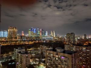 Просторная кухня-гостиная 24 кв.м оборудованная техникой, мебелью, теплый пол, окна эркером с обворожительным видом на Москва-Сити.