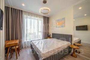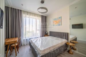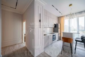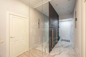 В квартире сделан дизайнерский ремонт с использованием дорогостоящих материалов, мебель из массива дерева, вся необходимая техника включая посудомоечную машину, теплый пол, в гостиной ортопедический диван со сменными чехлами, можно менять цвет. В каждой комнате установлен кондиционер, Система защиты от протечек "Нептун", система пожаротушения, много мест для хранения.