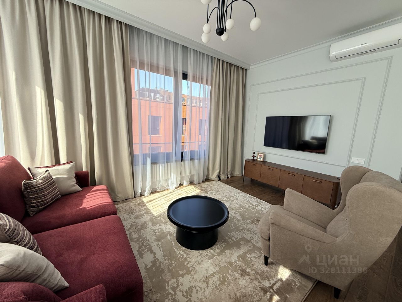 квартире есть две ванные комнаты: одна с ванной, другая с душевой кабиной, что удобно для семейного проживания. 2 спальни и просторная кухня/ гостиная. Обстановка включает удобную мебель на кухне и в комнатах. На кухне установлена вся необходимая техника: холодильник, посудомоечная машина, телевизор. есть стирально/ сушильная машина, кондиционеры в каждой комнате. Это позволяет с комфортом готовить и проводить время дома.
