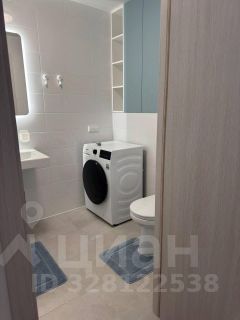 Совмещенный санузел. Стиральная машина с сушилкой 2 в 1 Gorenje. Зеркало с подсветкой и встроенная ниша с полками.
