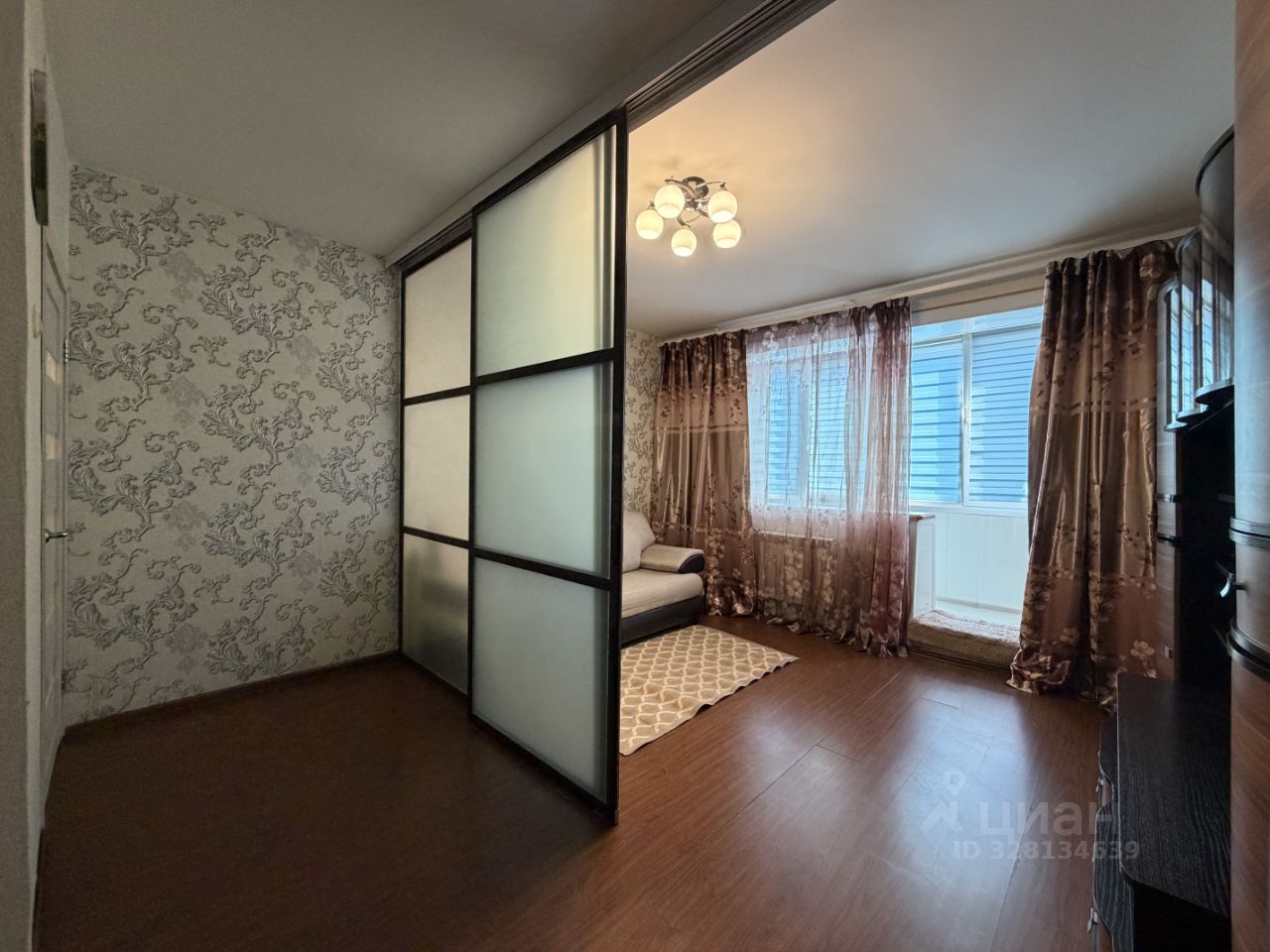 Квартира выполнена в современном стиле с прекрасным зонированием. Внутри есть вся необходимая мебель как в комнате, так и на кухне. Из техники — холодильник, телевизор и стиральная машина. Санузел раздельный и оборудован ванной. Квартира оснащена интернетом. Дополнительное удобство предоставляет наличие лоджии с рабочим местом. В доме два пассажирских лифтов, а также мусоропровод.