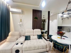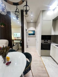 Квартира выполнена с дизайнерским ремонтом, что создаёт стильную и современную атмосферу. В каждой комнате и на кухне есть необходимая мебель, а также установлена современная бытовая техника: кондиционер, холодильник, посудомоечная машина, телевизор и стиральная машина. В ванной комнате установлена душевая кабина. Окна выходят на улицу, что обеспечивает хорошее естественное освещение.