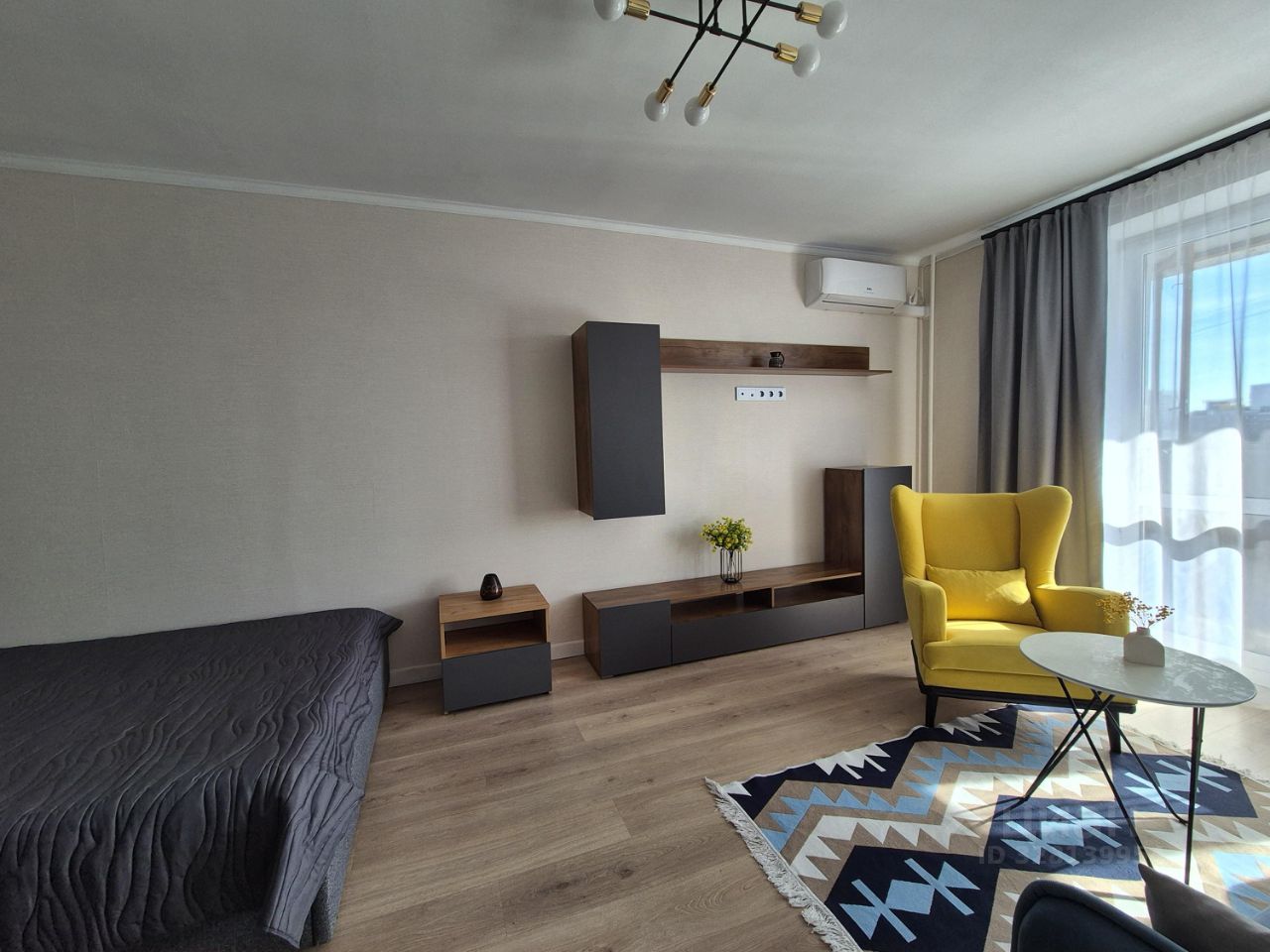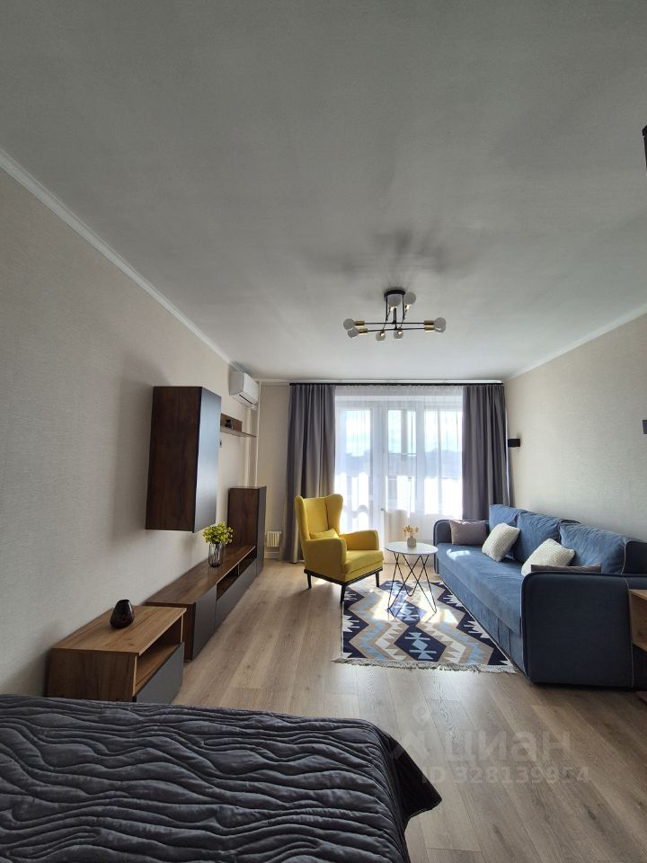 В квартире выполнен хороший качественный ремонт, с полной заменой электрики. На кухне установлен встроенный кухонный гарнитур, плита стеклокерамика, посудомоечная машина все встроенное. Есть хороший большой холодильник, установлен кондиционер и телевизор. Кухонный стол со стульями. В комнате из мебели удобная кровать, шкаф для одежды, раскладной диван, удобное кресло, тумба под телевизор (если у вас он есть его можно там установить интернет и телевизионная антенна выведены), установлен кондиционер. Санузел совместный в кафеле до потолка, хорошая сантехника и санфаянс. В прихожей установлен вместительный шкаф для верхней одежды. Окна во всей квартире стеклопакеты. Полы в комнате ламинат в прихожей и кухне плитка. Большая застеклённая лоджия. Металлическая дверь. Домофон. Развитая инфраструктура, парковка стихийная возле дома мест много, рядом есть много магазинов и парк.