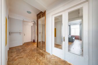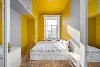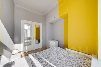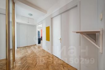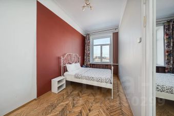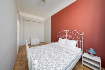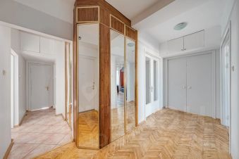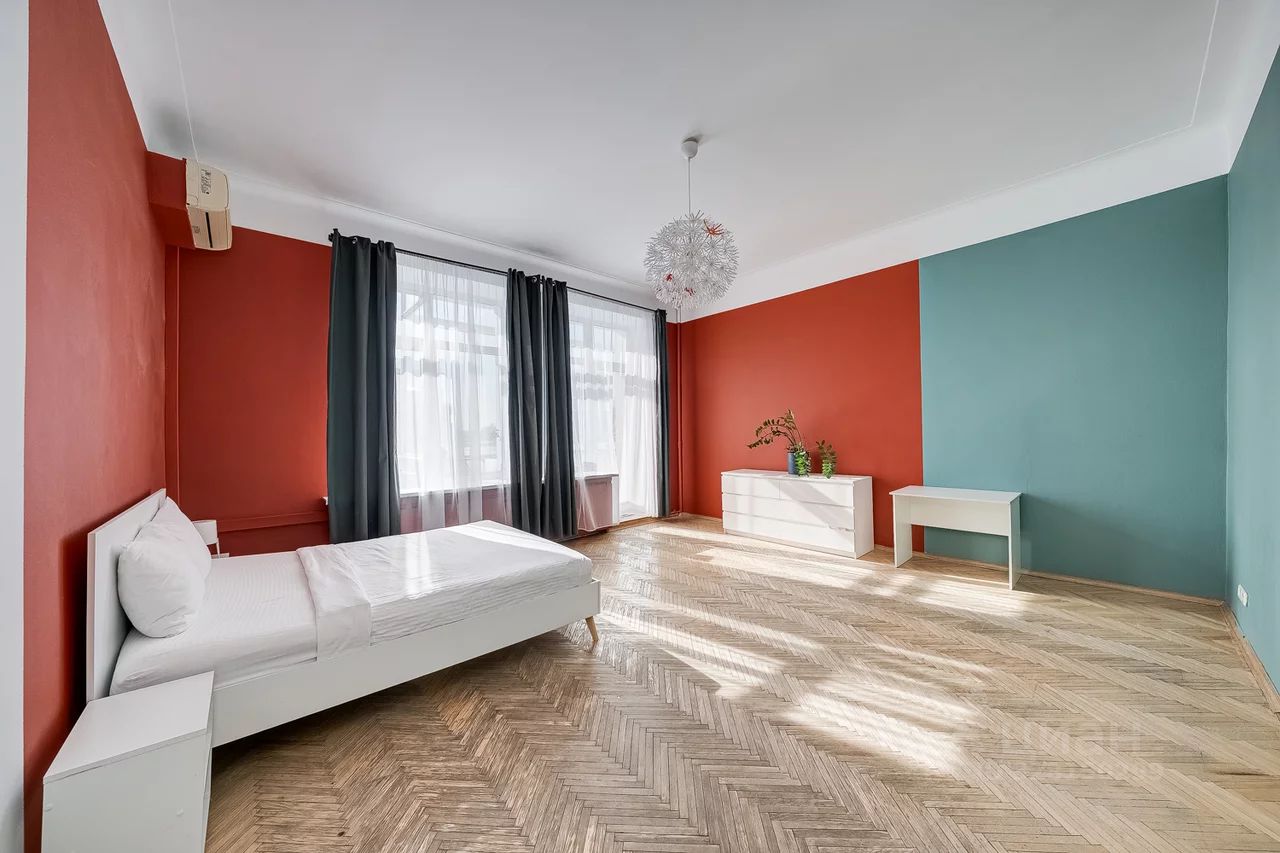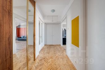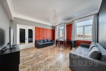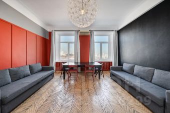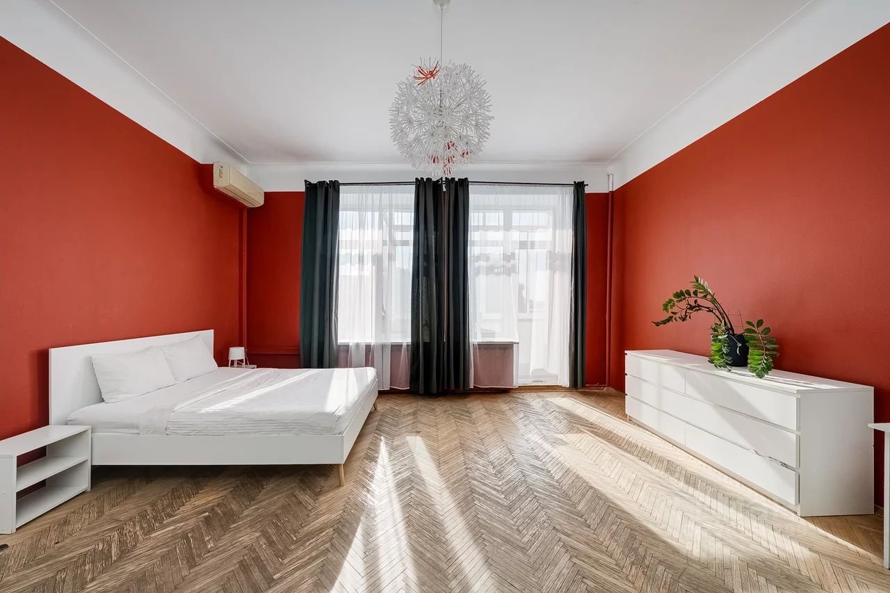 Общая площадь квартиры составляет 120 кв. м, планировка продуманная и функциональная: три отдельные спальни (одна с выходом на застекленный балкон), просторная гостиная с телевизором, кухня, раздельный санузел, а в ванной комнате есть окно. Окна выходят на две стороны — в тихий двор и на главные достопримечательности Москвы.