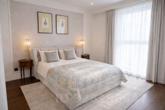 Интерьер выполнен в современном стиле с изящными элементами антиквариата — это создаёт атмосферу утончённой роскоши и вневременной элегантности.
